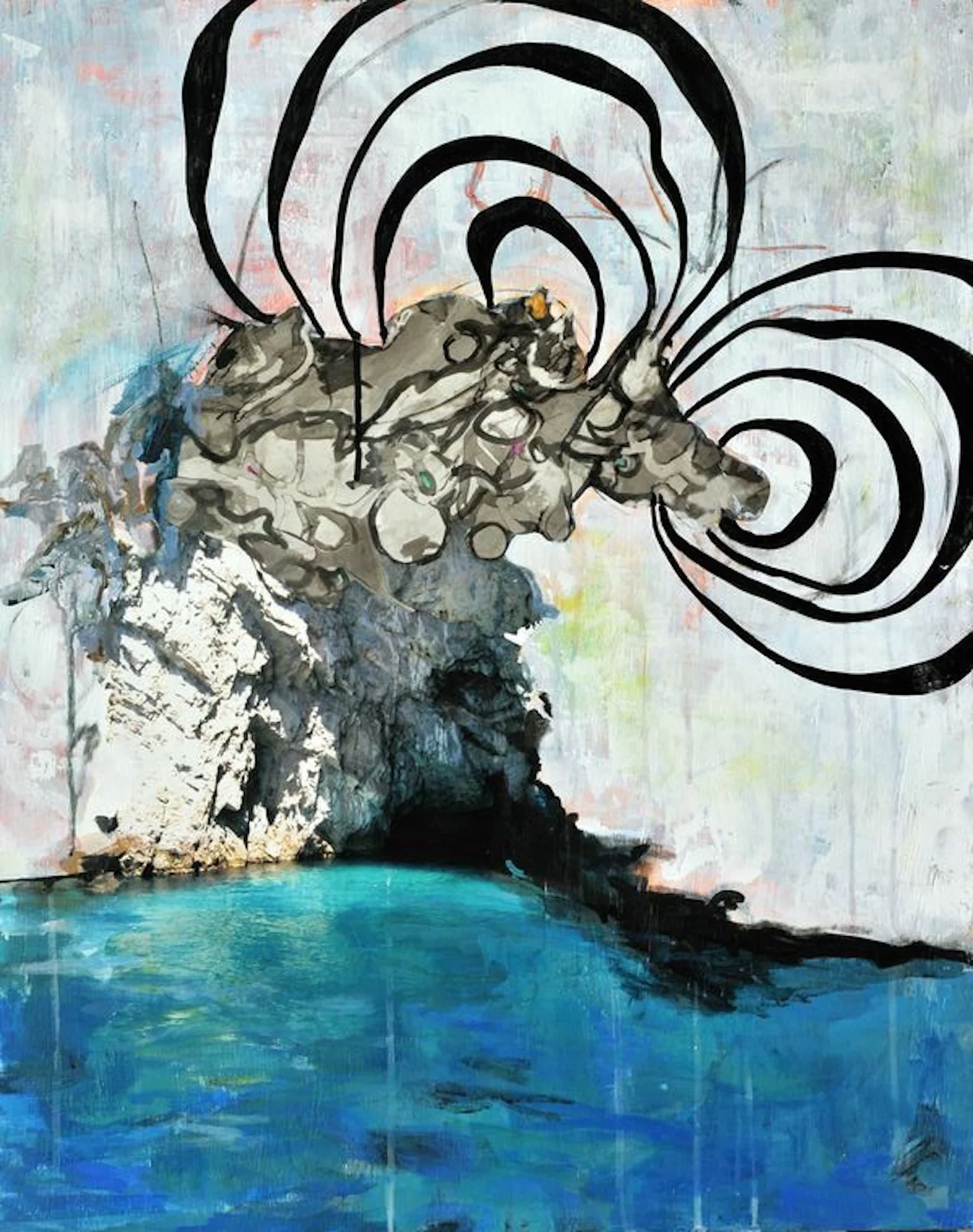 Sea Cave 1, mixed media; photograph, acrylic, ink, and mylar on panel, 28 in x 36 in, 2009 SOLD