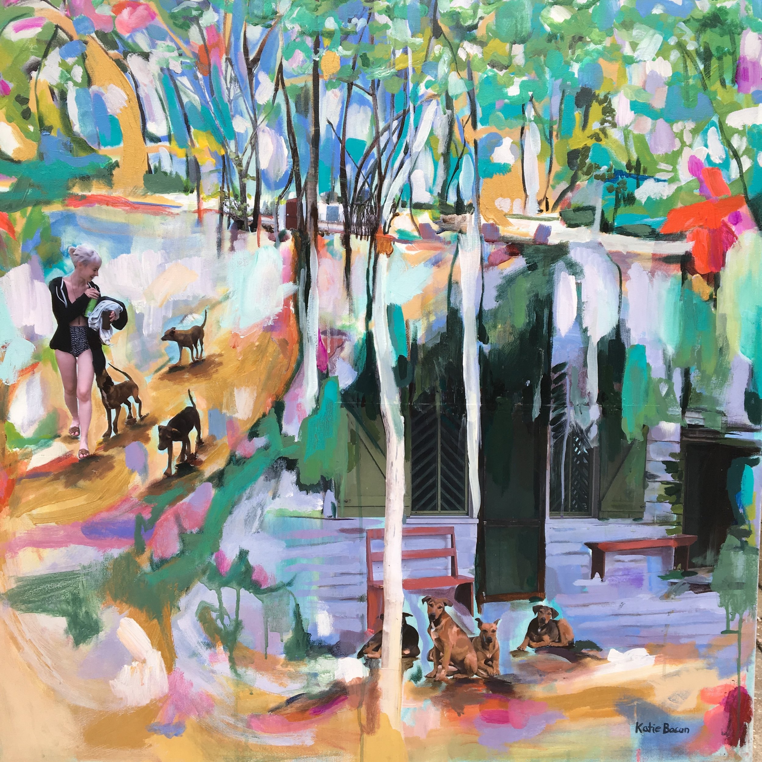 Ashley And The Jamaican Pups, mixed media; photograph & acrylic on canvas, 36 in x 36 in 2016