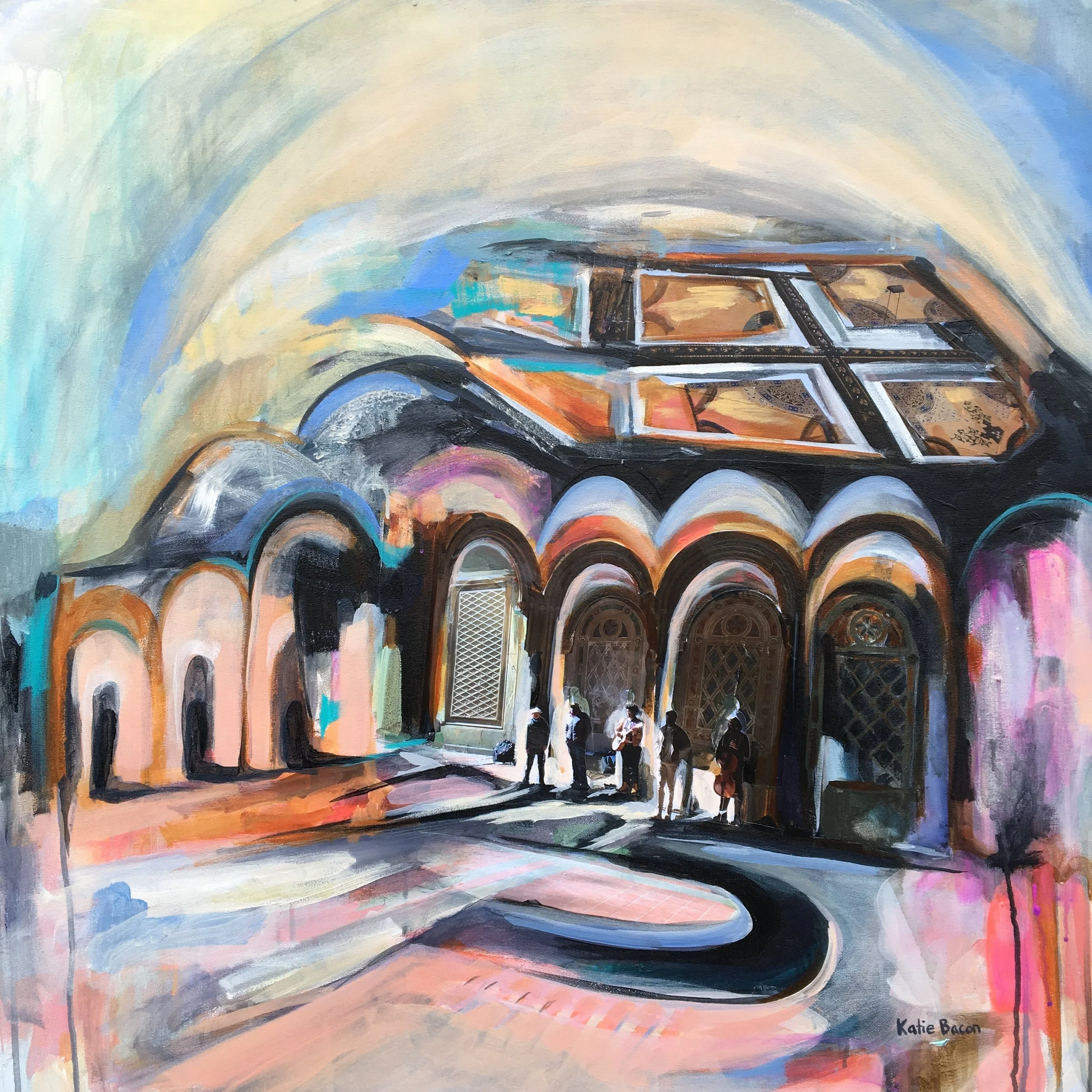 Band Under Bethesda, mixed media; photograph & acrylic on canvas, 36 in x 36 in, 2016